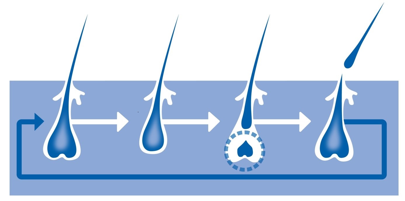3. Ruhephase_Das Haar ist nicht mehr aktiv, es wird durch ein neues Haar verdrängt und fällt schließlich aus.